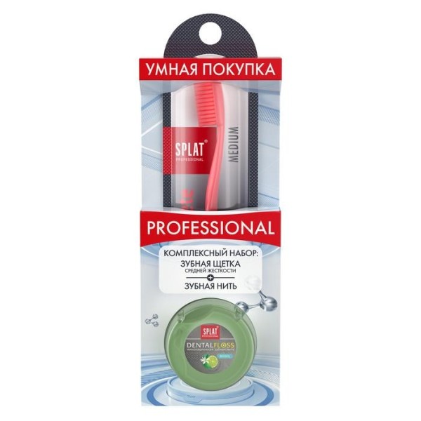 СПЛАТ PROFESSIONAL НАБОР/ЗУБНАЯ ЩЕТКА ULTRA COMPLETE /MEDIUM/+ЗУБНАЯ НИТЬ ОБЪЕМНАЯ С БЕРГАМОТОМ И ЛАЙМОМ 30М - умная покупка